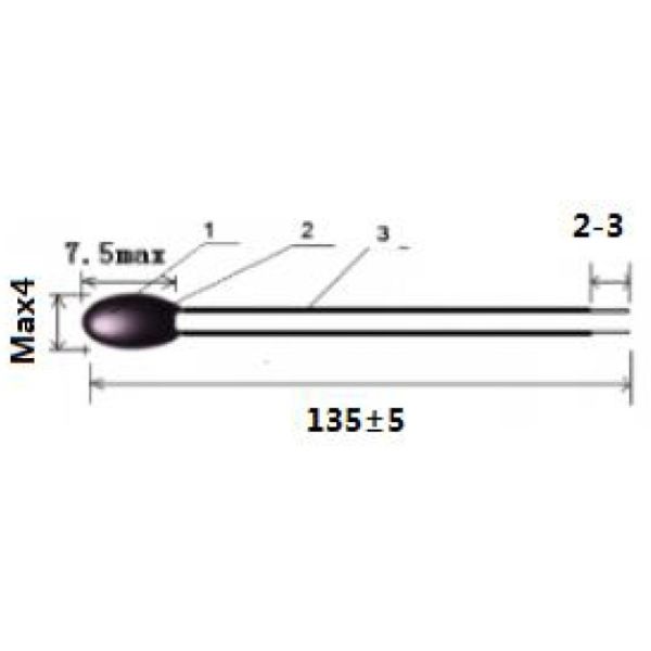NTC thermistor in Radial Leaded, Epoxy Resin coated form, Standard pin wire is tinned copper brass wire, non-insulated, optional in tinned kinked steel wire, PVC wire, PTFE wire. Widely applied in temperature sensing, measurement, detection, indicator, monitoring, gauging, control, calibration and compensation, etc., suitable for HVAC and white goods, automotive, battery pack application.